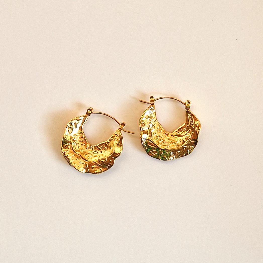 Cerceii Leafs sunt adevarate piese de arta. Modelul artistic inscris pe inoxul auriu transforma fiecare pereche intr-un statement de stil si creativitate. Ei adauga o nota unica si artistica tinutelor tale, fiind perfecti pentru cei care vor sa isi exprime personalitatea printr-un accesoriu deosebit.