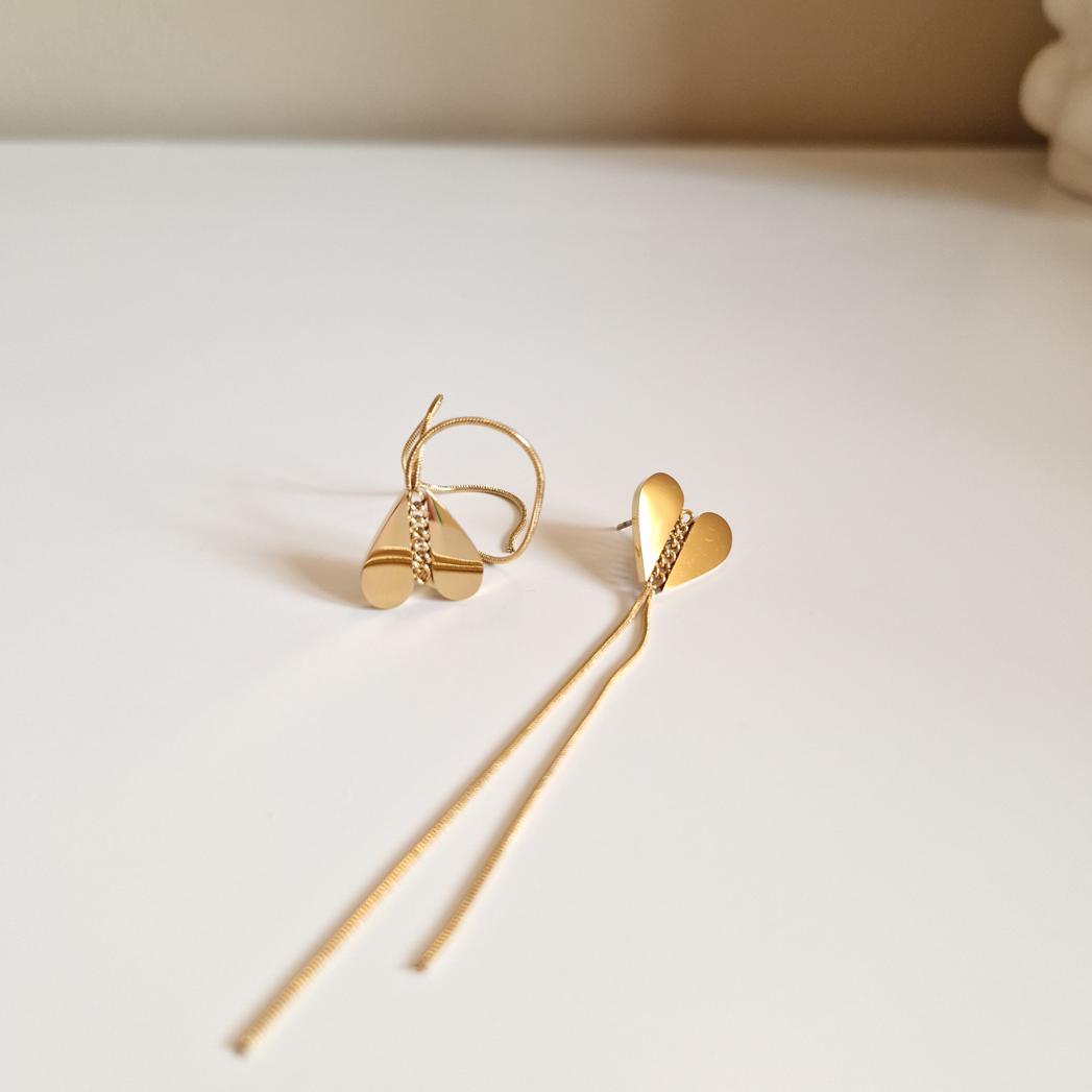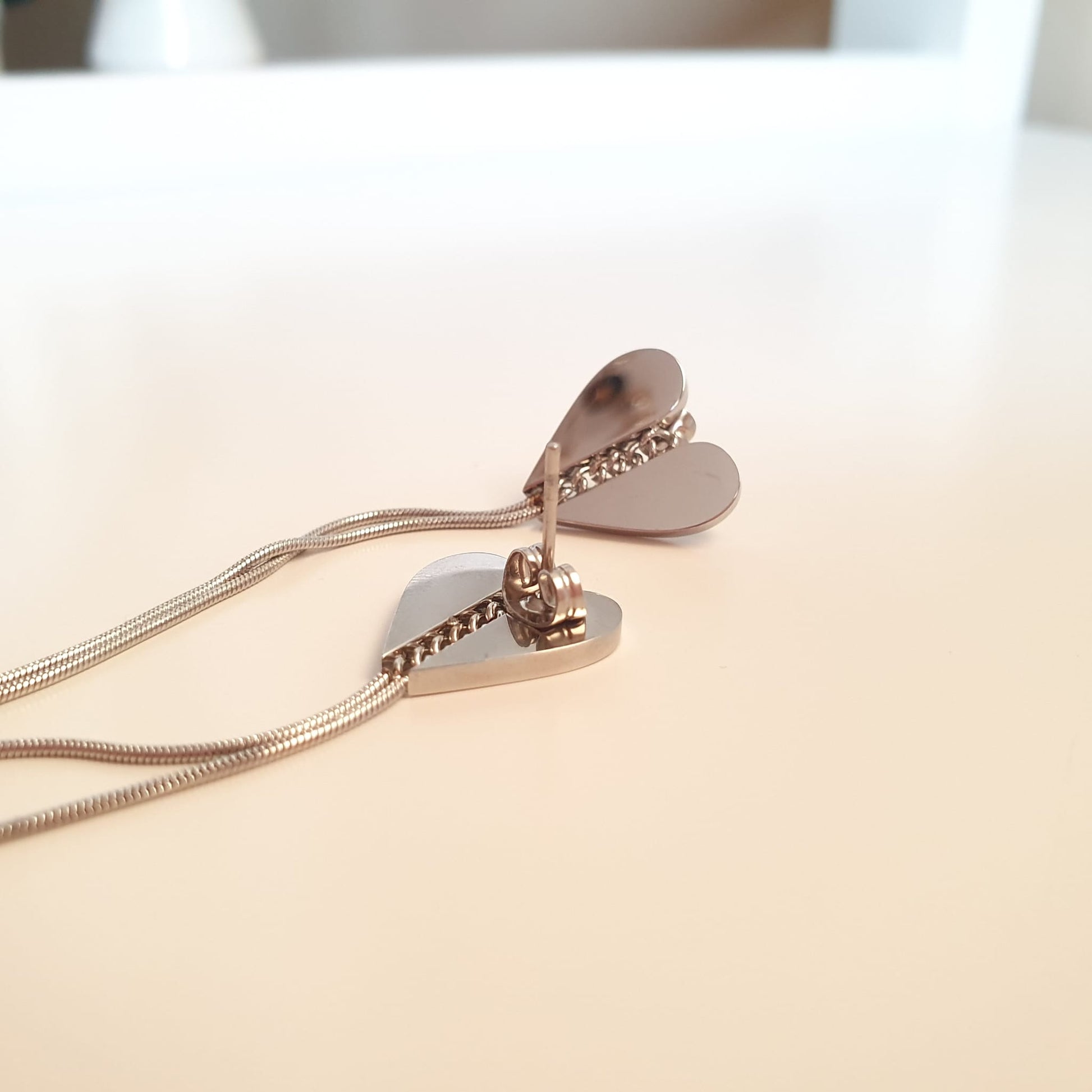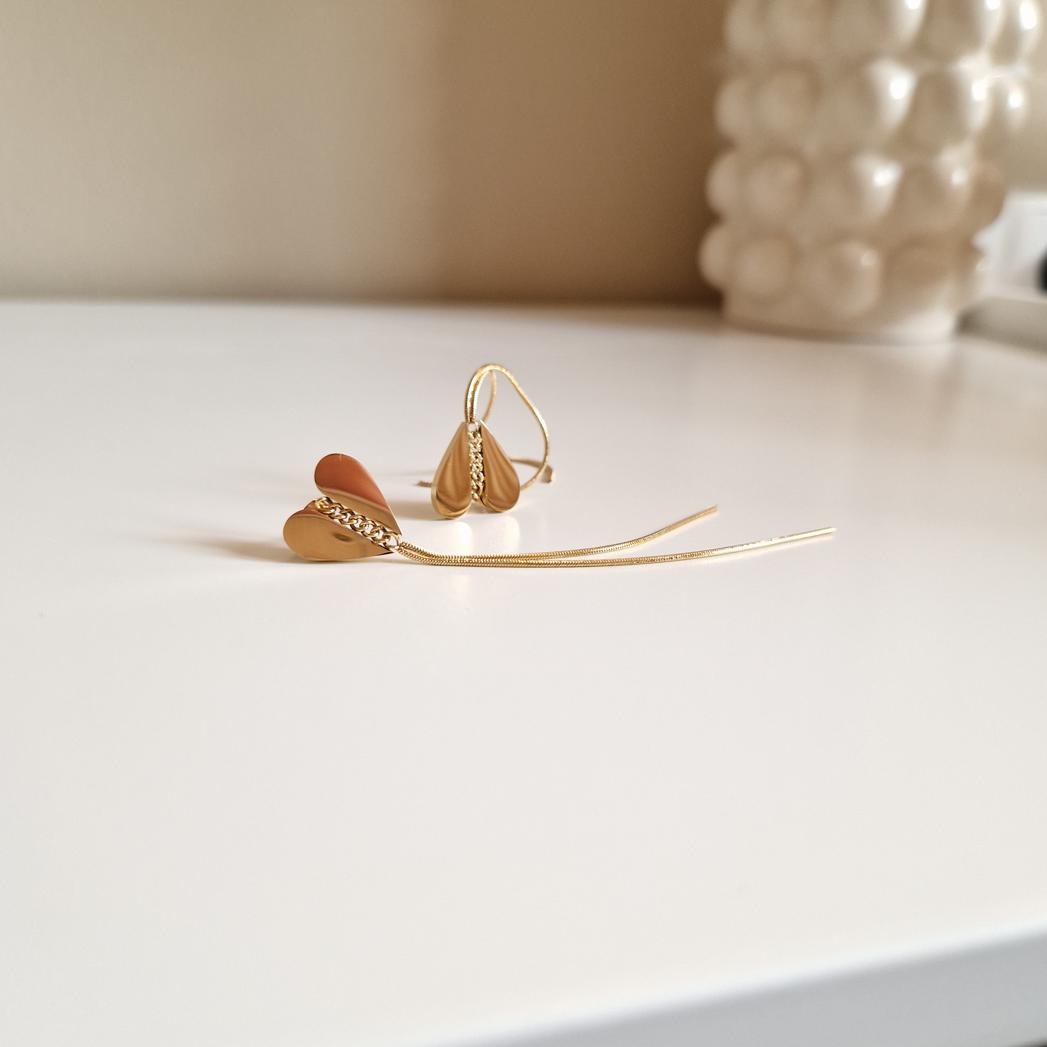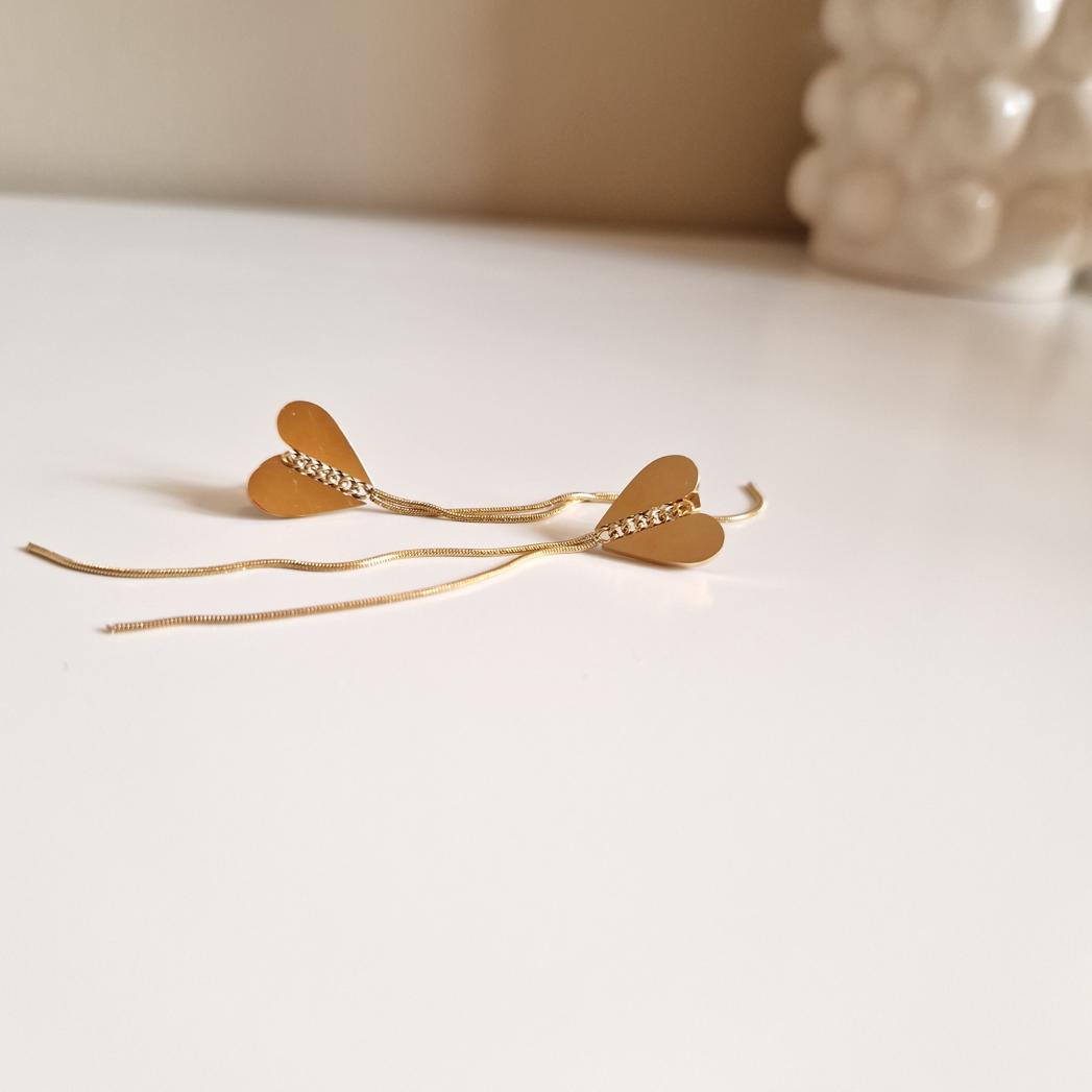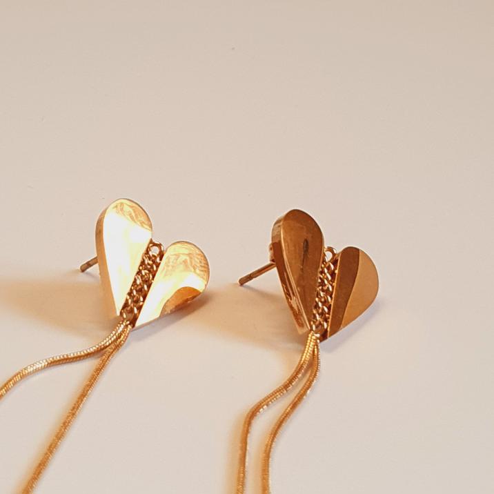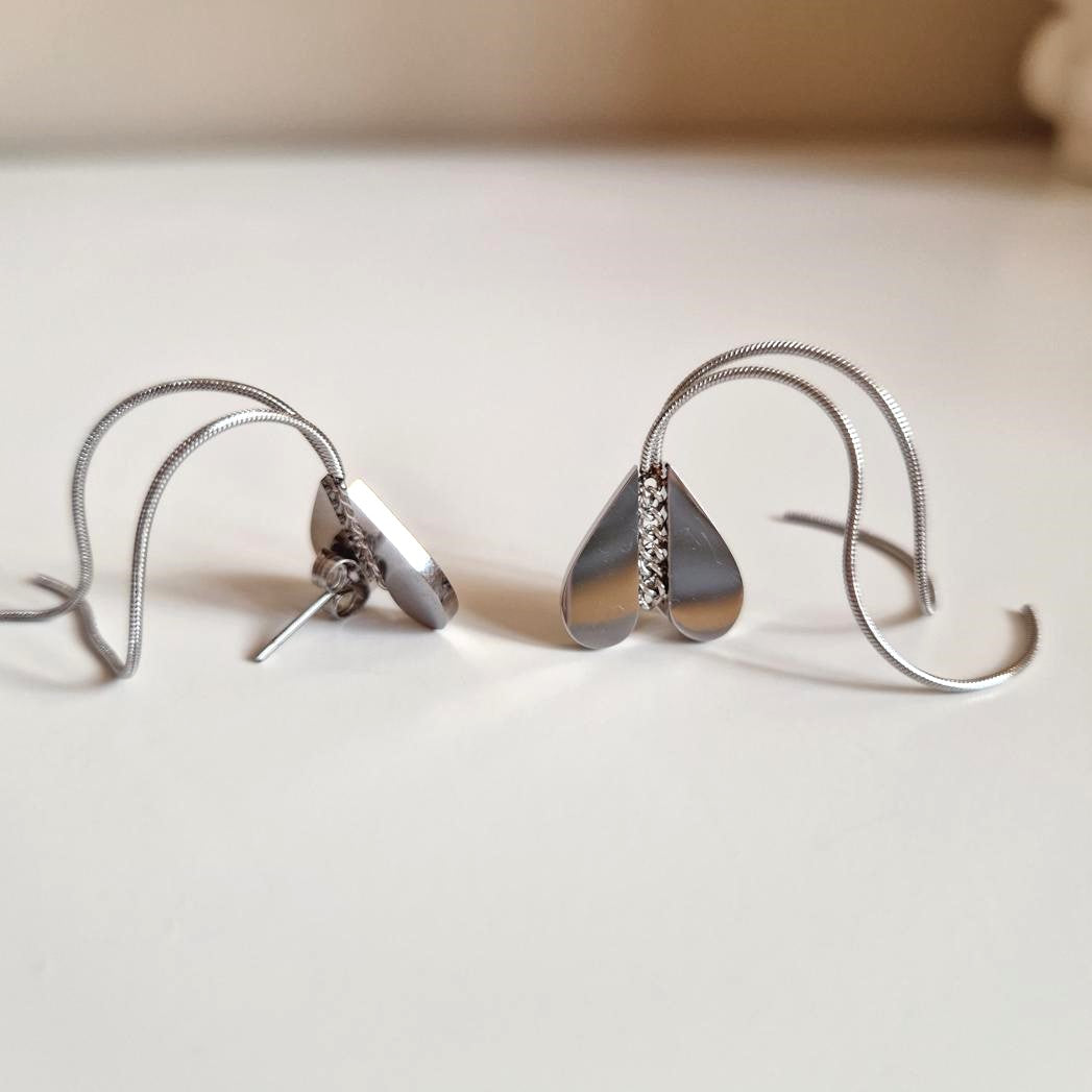 Cu un design contemporan, în formă de inimă, și un lant lung delicat, acești cercei sunt disponibili în varianta auriu și argintiu, aducând o notă strălucitoare și modernă fiecărei ținute.