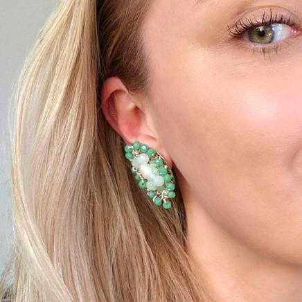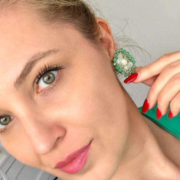 Imbratiseaza eleganta cu cerceii Splendor din colectia Urban Chic, unde stilul intalneste natura. Creati manual, acesti cercei imbina delicatetea perlutelor albe cu farmecul vibrant al cristalelor verzi, toate asezate pe un suport argintiu din inox. O piesa de arta purtabila ce adauga o nota de culoare si finete tinutei tale.