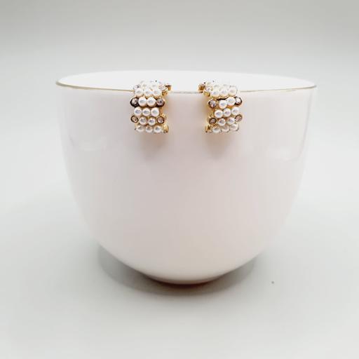 Cercei cu perle imitatie, pietre zircon, inchidere cu surub, rezistenti la apa. Sunt niste cercei delicati, de mici dimensiuni, ce denota finete si eleganta. Sugestie de purtare - impreuna cu colierul cu pandantiv inima Pulse.