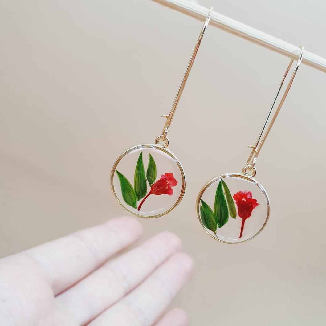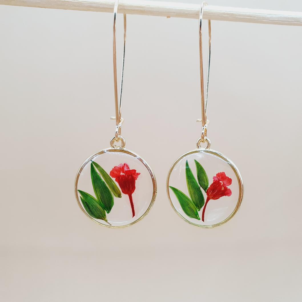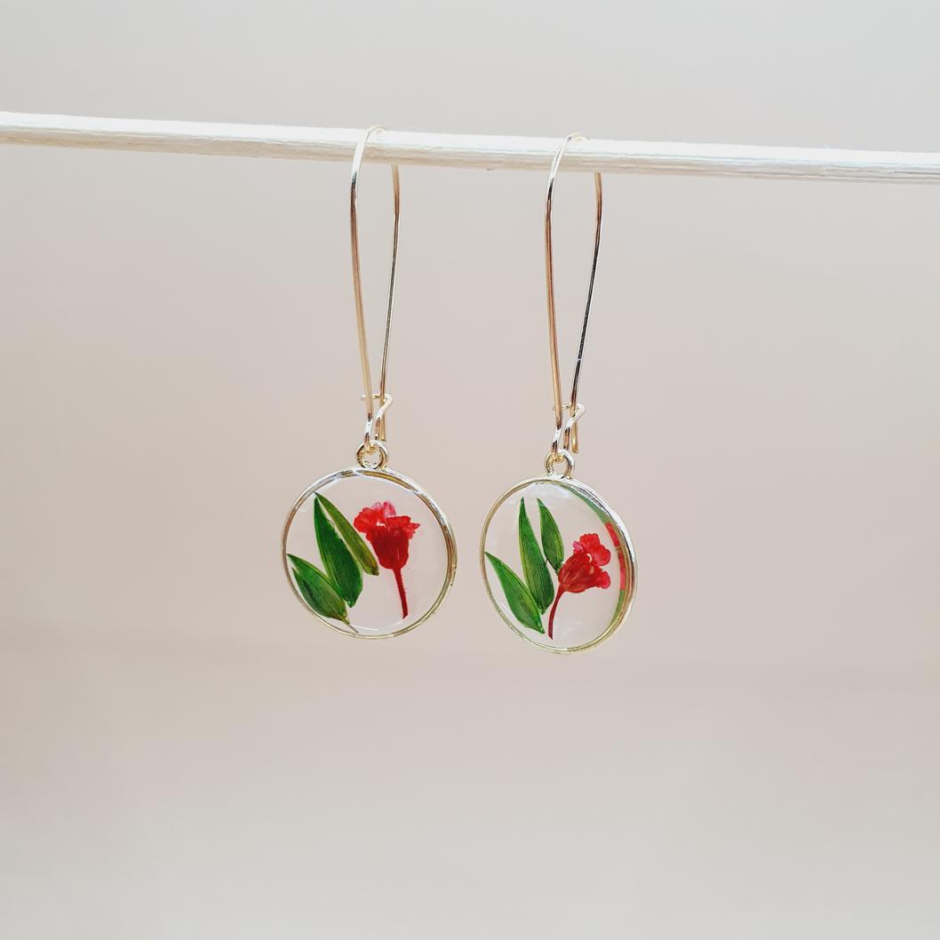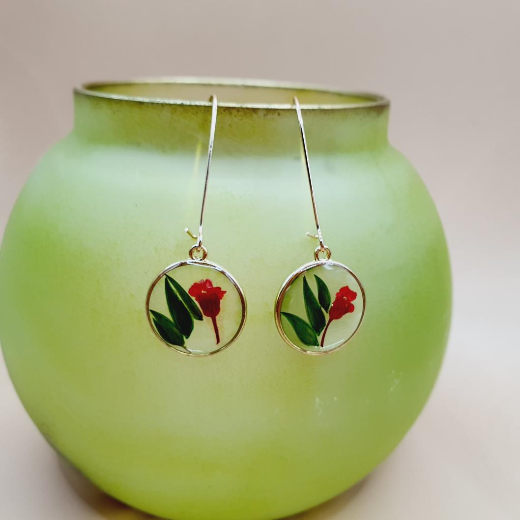 Descopera farmecul in cerceii din rasina cu floare rosie presata. Acesti cercei cu tortita sunt lucrari de arta miniaturala, perfecti pentru a adauga un strop de primavara tinutei tale. Ofera un martisor sau poarta cu bucurie acesti cercei inspirati din natura.