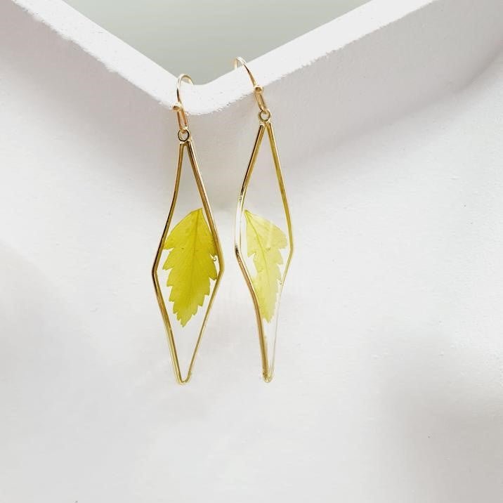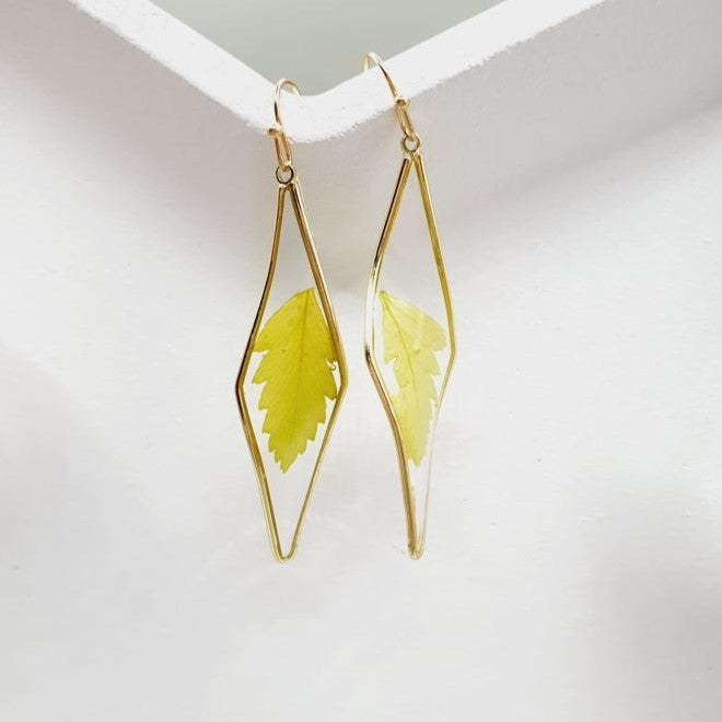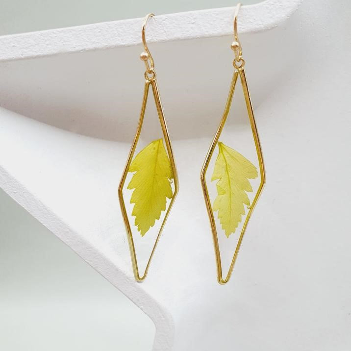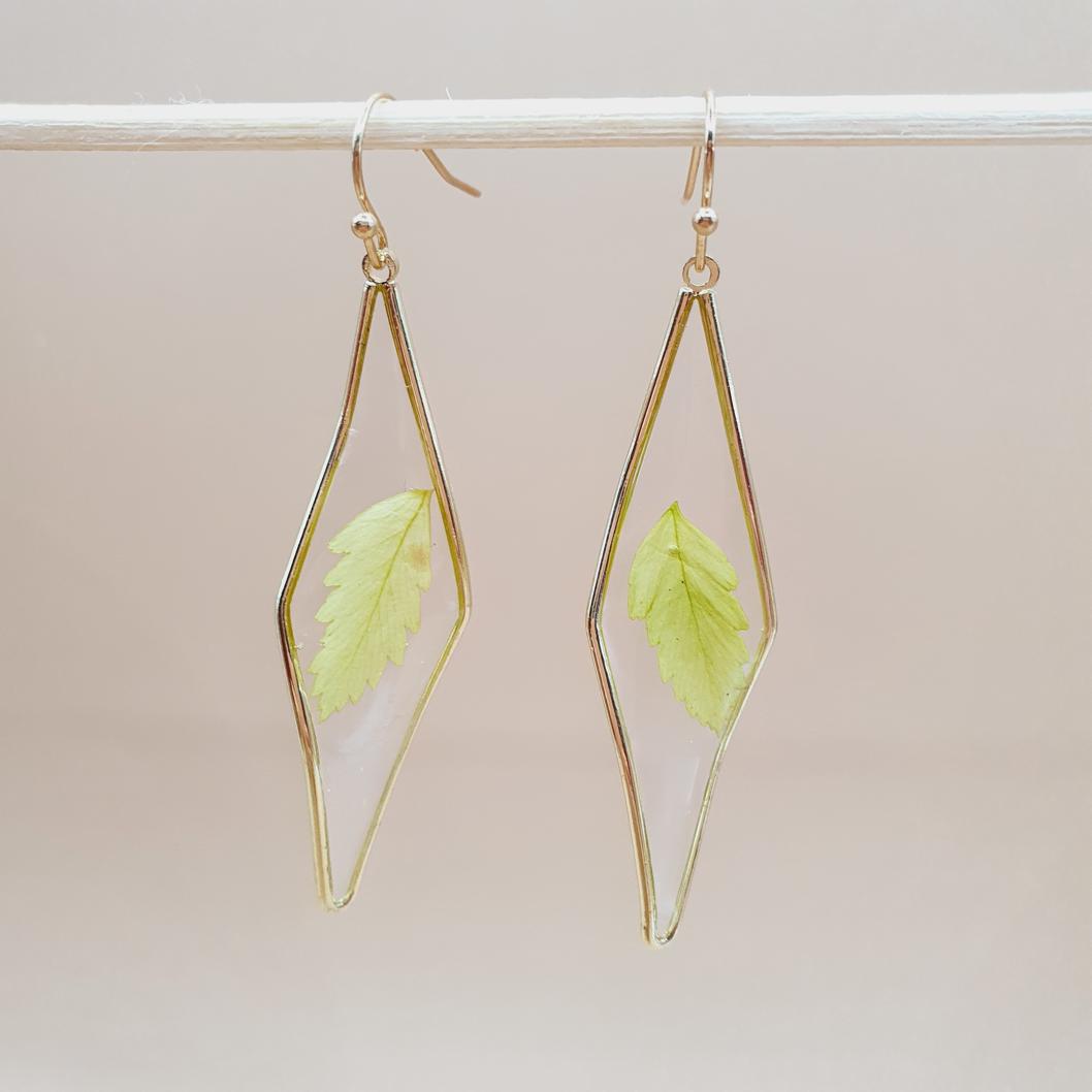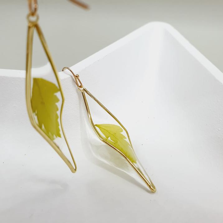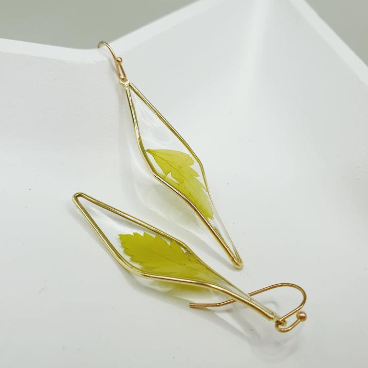 Cercei geometrici rasina frunza presata