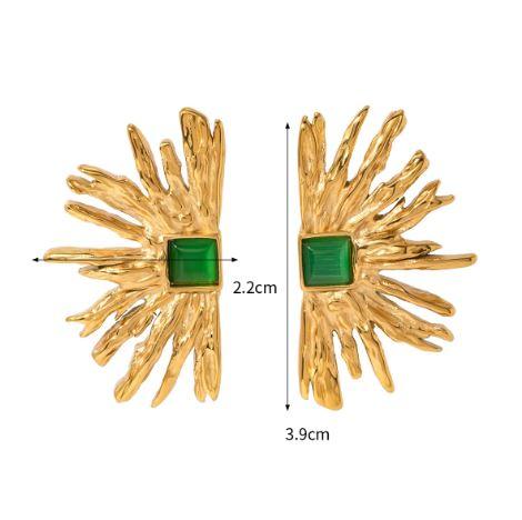 Acesti cercei impunatori, realizati din otel inoxidabil auriu, se remarca prin designul lor spectaculos inspirat de razele soarelui. Forma semicirculara, ce reprezinta o jumatate de soare, adauga un element de unicitate si modernitate, perfect pentru cele care doresc sa iasa in evidenta.