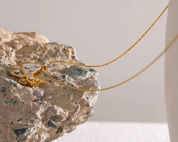 Acest colier la baza gatului, cu lant inox auriu fin si pandantiv elegant in forma de fluture, este conceput pentru a adauga o nota de rafinament si subtilitate tinutei tale.