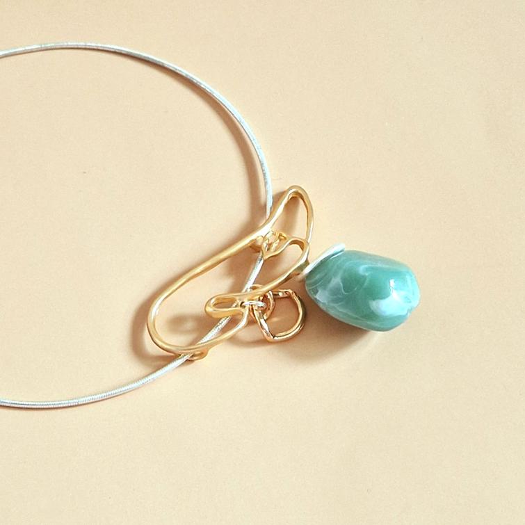 - Design: colier statement modern, cu pandantiv unic si piatra verde ca punct de atractie